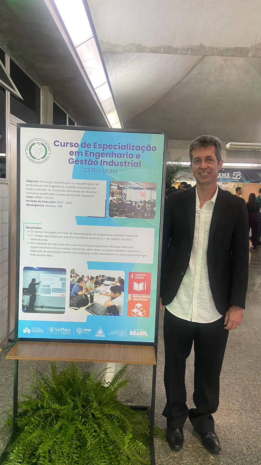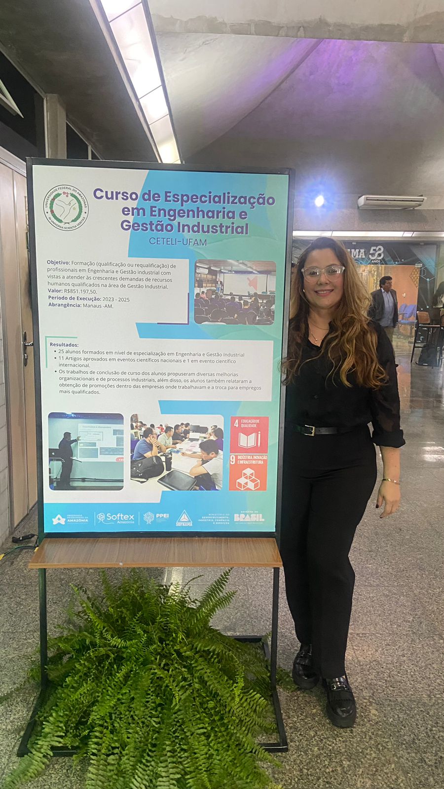 O foco da participação do CETELI foi a exposição dos resultados do Curso de Especialização em Engenharia e Gestão Industrial, representado pela professora Ana Cláudia de Araújo Moxotó e o professor Dalton Chaves Vilela Júnior, Pró-Reitor de Inovação Tecnológica da UFAM, a apresentação ocorreu em Showcase em formato de totem . O Projeto teve investimento no valor de de R$851.197,50 e execução entre novembro de 2023 e outubro de 2025, tendo como objetivo central a formação (qualificação ou requalificação) de profissionais em Engenharia e Gestão industrial com vistas a atender às crescentes demandas de recursos humanos qualificados na área de Gestão Industrial, destacando-se a Gestão da Inovação e ferramentas para seu fortalecimento, incluindo o contexto da quarta revolução industrial de maneira que possam contribuir com projetos de inovação (implementação, gestão ou análise de projetos) para o aumento da qualidade e produtividade das empresas da região, contribuindo para o desenvolvimento sustentável.